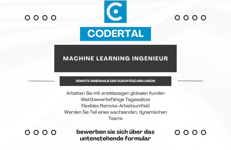 Codertal sucht einen Machine Learning Ingenieur für eine Remote-Position innerhalb der Europäischen Union unter einem B2B-Vertrag. Wenn du leidenschaftlich gerne intelligente Systeme und skalierbare KI-Lösungen entwickelst, möchten wir dich gerne in unserem Team willkommen heißen!
